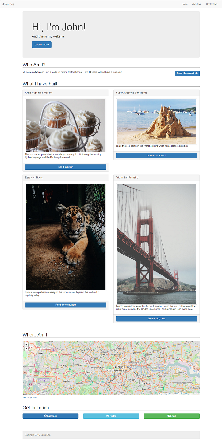<p>This is a made up website for a made up company. I built it using the amazing Python language and the Bootstrap framework.</p>